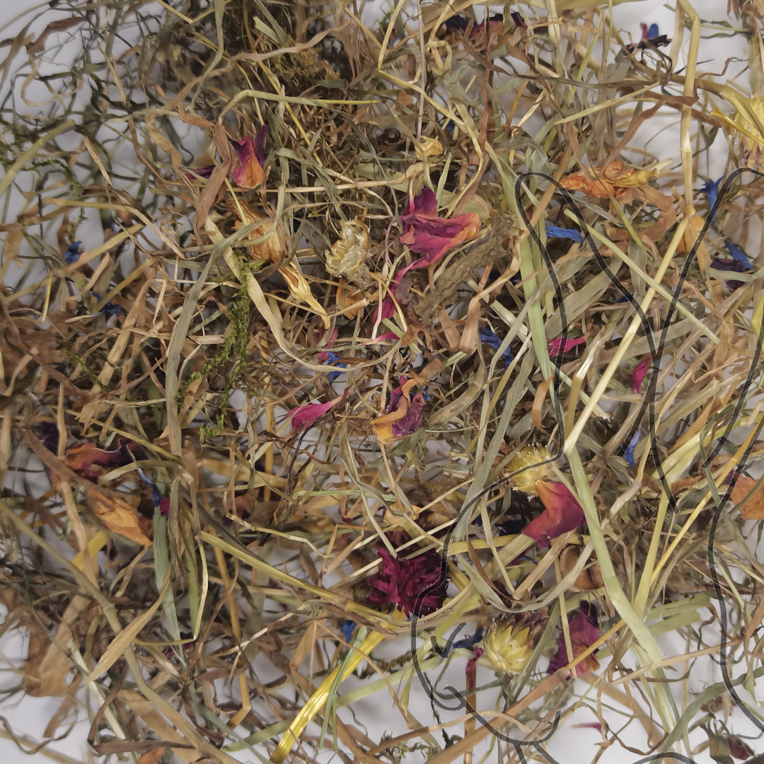 Su contenido en fibra es alto, pero a la vez también es nutritivo. Esto no solo lo convierte en un fiel aliado para épocas de muda, sino que lo hace más irresistible. Aunque también es ideal como heno base a lo largo de todo el año.